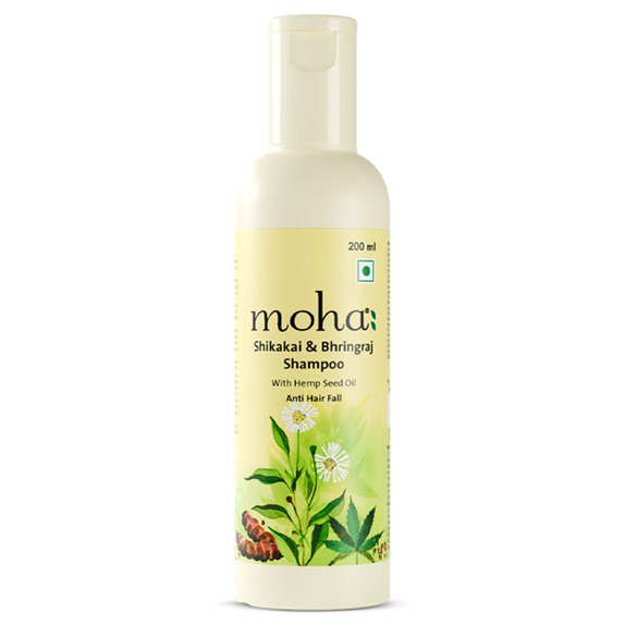 MohaShikakai&Bhringraj Shampoo: This shampoo is infused with hemp seed oil and is a natural formula for hair fall control and growth. It helps reduce breakage, improve texture, and leave hair naturally silky.