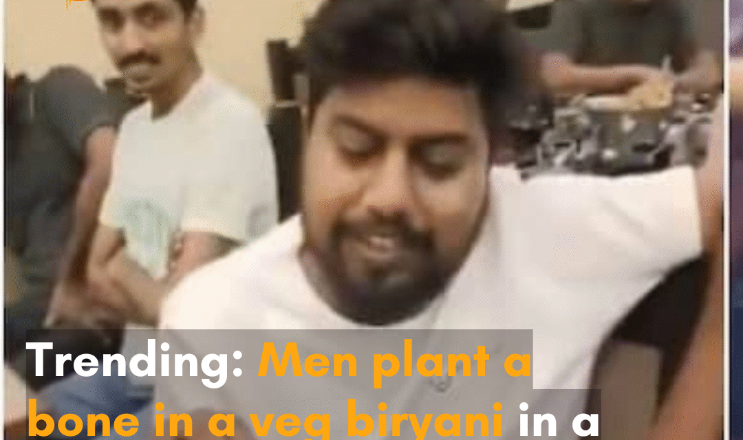 The footage that has now gone viral on social media platforms shows men planting a bone in veg biryani at Biryani Bay in Uttar Pradesh’s Gorakhpur to evade a bill of ₹5000. The group of young men falsely accused a local eatery of serving meat in a vegetarian dish. According to a report by a leading portal, a group of eight to 10 men had dined at the restaurant, ordering both vegetarian and non-vegetarian biryanis. Not long after the food arrived, one of them loudly claimed to have found a meat bone in his veg biryani. Sensing something was weird, the restaurant staff immediately called the police.